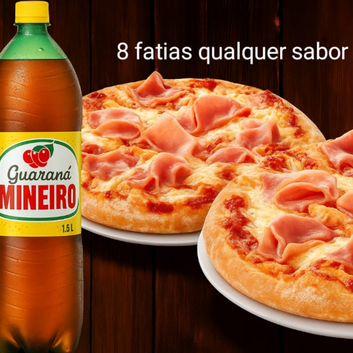2 Pizzas(8 Fatias)qualquer Sabor Do Cardapio+1 Mineiro 1,5 Lts