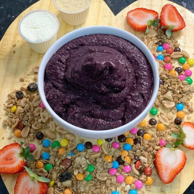 Açai, Guaraná em Pó, Amendoim, Granola Misturada e Xarope de Guaraná
