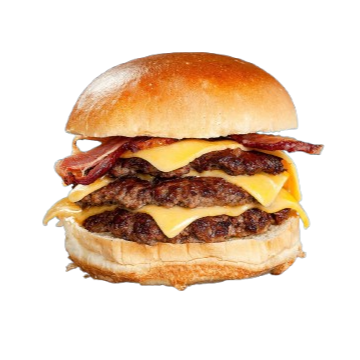 Pão / 3 Humb. 100g / 3 Mussarela / Bacon / Alface / Tomate / Molho Tradicional