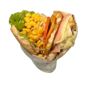 Pão Sírio / Filé de frango 100g / Mussarela / Bacon / Ovo / Alface / Molho Tradicional
