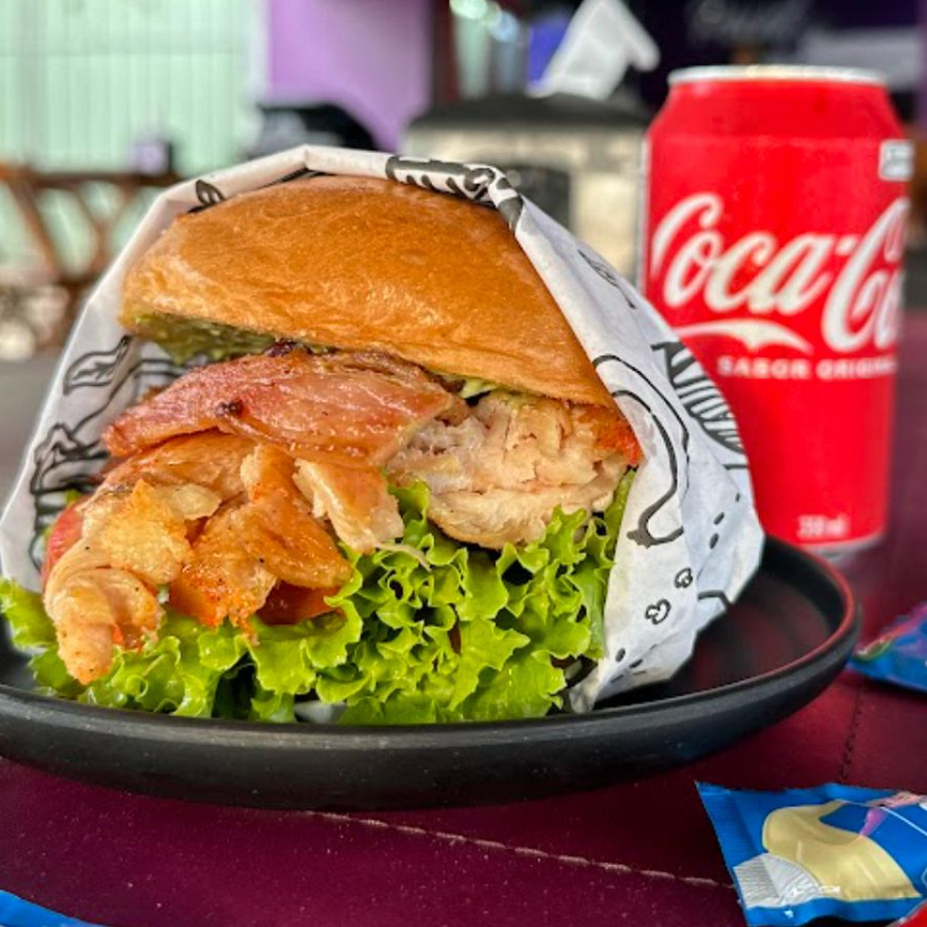 Pão / Humb. de frango 100g / Bacon / Alface Tomate / Molho Tradicional