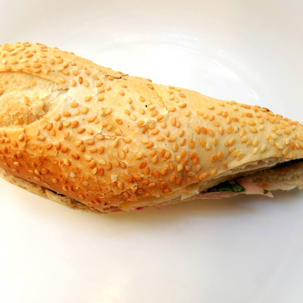 Pão baguete, presunto e mussarela