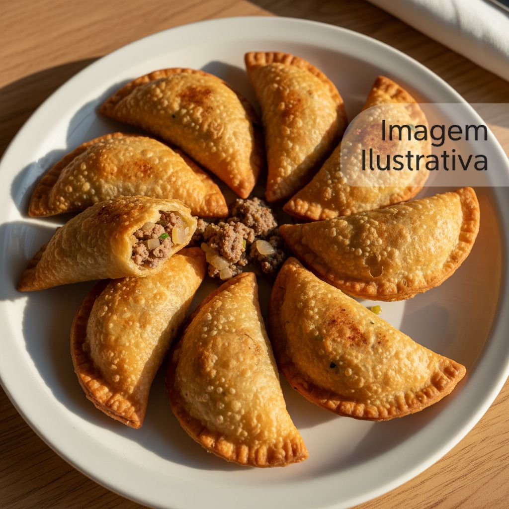 Risoles recheado com carne moída bem temperada e cebolas, frito até ficar dourado.