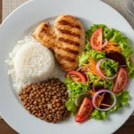 Arroz, Feijão, Bife de frango, farofa e salada