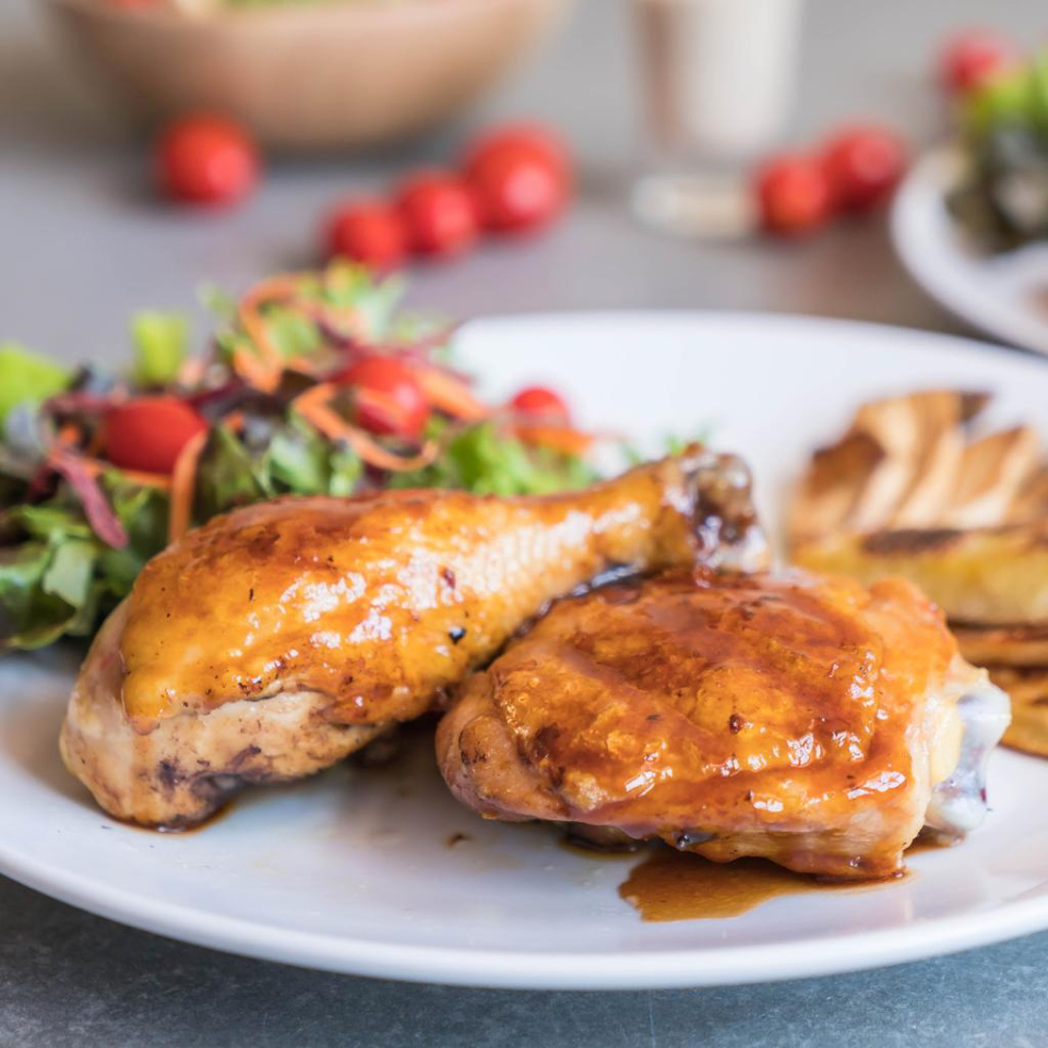 Sobrecoxa Assada Arroz Branco Feijao De Caldo Salada