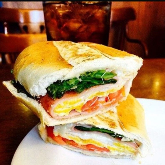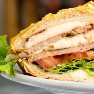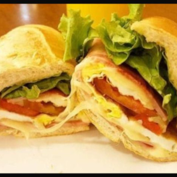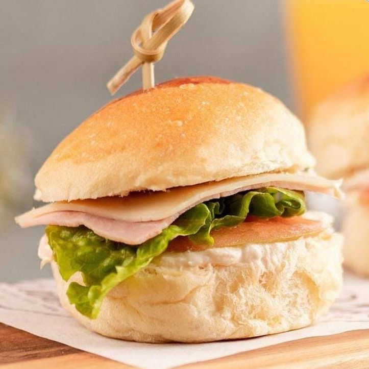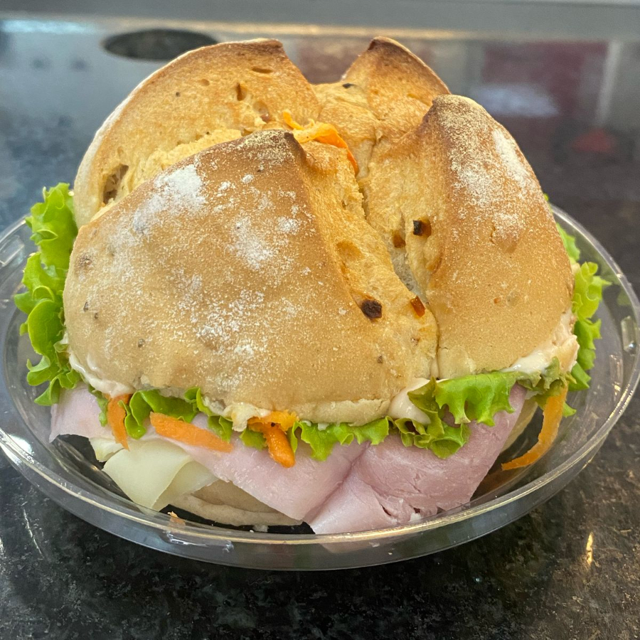 Pão Batata, Presunto, Mussarela, Tomate e Alface.