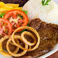 Bife Bovino Acebolado Arroz Branco Feijão De Caldo Batata Frita Farofa Salada
