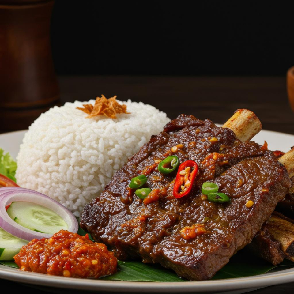 Costela Bovina C/ Mandioca Arroz Branco Feijão De Caldo Farofa E Salada