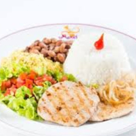 Filé De Frango Arroz Branco Feijão De Caldo Batata Frita Farofa Salada