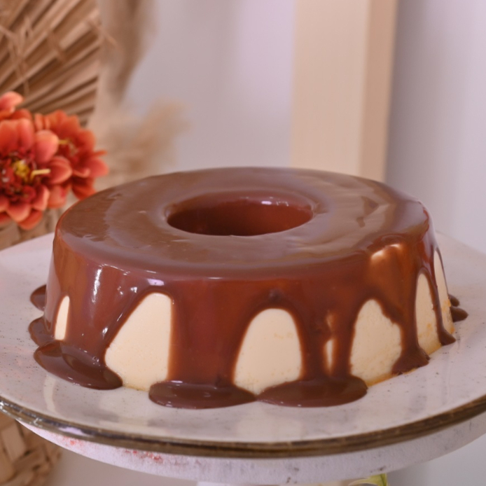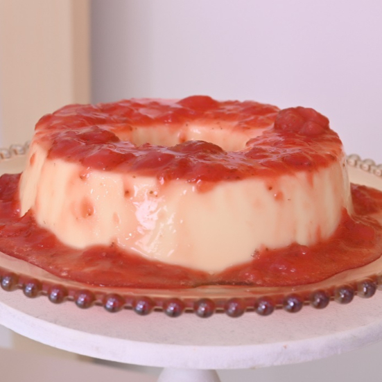 Pudim De Chocolate Branco Com Calda De Morango - 600g