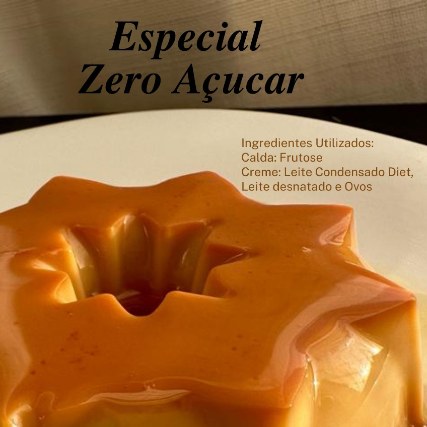 Pudim tão maravilhoso que nem parece zero açúcar, mas é feito com leite condensando diet zero açúcar, leite e ovos. Calda muito gostosa, feita com frutose. Porção de 600g, serve aprox. 6 fatias. Obs: A frutose é um açúcar natural, presente nas frutas, no mel e em alguns vegetais. Ele é benéfico à saúde humana e pode ser consumido por pacientes com diabetes tipo 2 de forma moderada.
