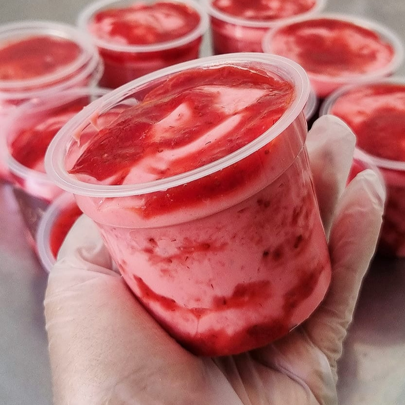Para matar o calor nada melhor que um Delicioso Mousse de Morango, uma sobremesa irresistível que combina a leveza e o sabor incrível do morango fresco e geleia caseira de morango. Surpreenda-se com a cremosidade desse doce divino, perfeito para encerrar uma refeição com chave de ouro. 140ml.