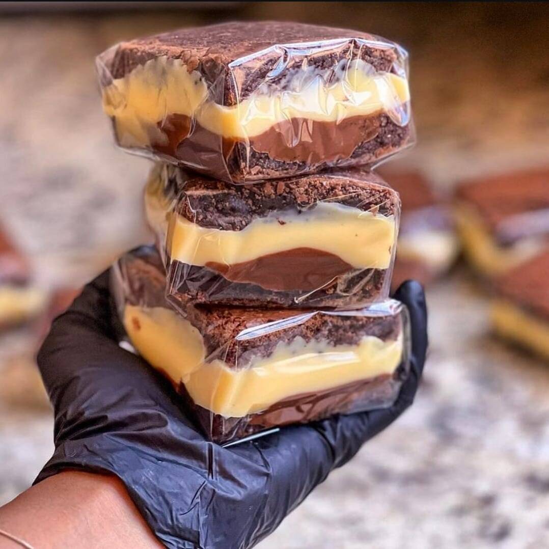 brigadeiro cremoso. Cada pedaço oferece uma explosão de sabores, com a combinação perfeita entre o chocolate amargo do brownie e a doçura irresistível do brigadeiro. Aprox 75g