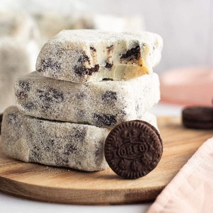 Palha italina feita com brigadeiro Cremoso de Ninho com pedaços de Oreo. Aprox. 75g