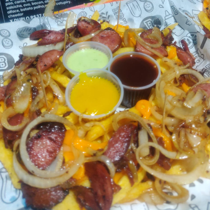 BATATA FRITA, CHEDDAR, CATUPIRY, BACON, CALABRESA E CEBOLA
