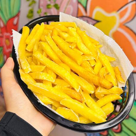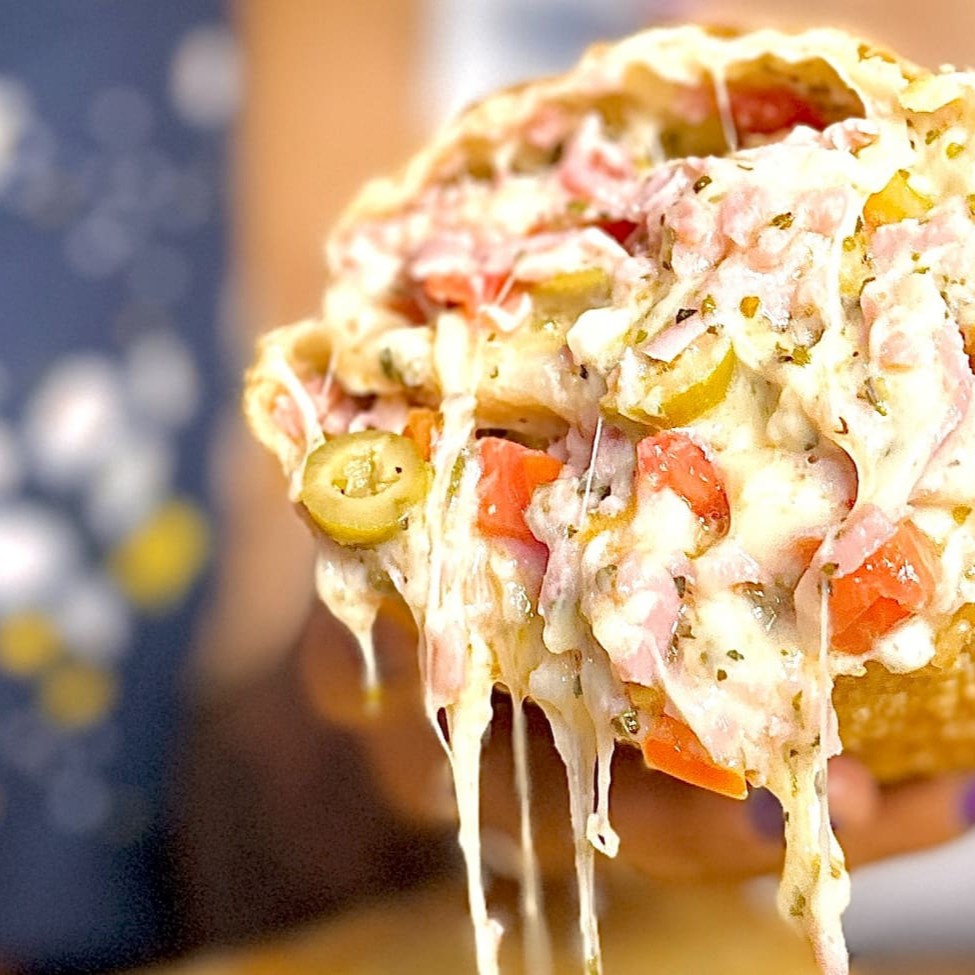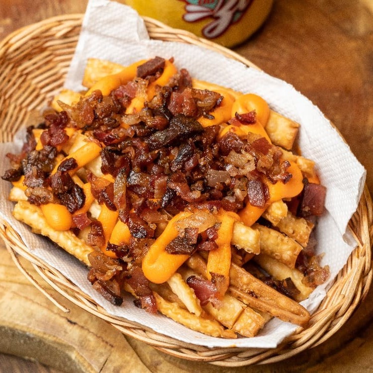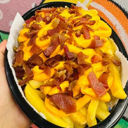 Deliciosas tiras de massa de pastel fritas no óleo de algodão, com duas camadas bacon crocantes e cheddar premium que você não vai querer dividir com ninguem!