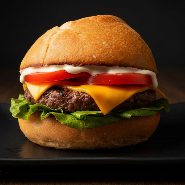 Um clássico artesanal de 100g, com muçarela derretida, alface crocante e tomate fresco, tudo envolto em pão macio. Simples, saboroso e irresistível.