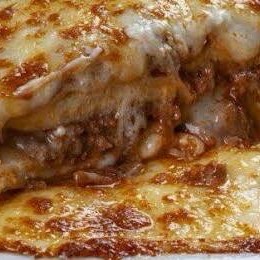 Lasanha com molho vermelho bolonhesa,tempero especial do Chef,molho branco cremoso,mussarela,presunto,massa e orégano.