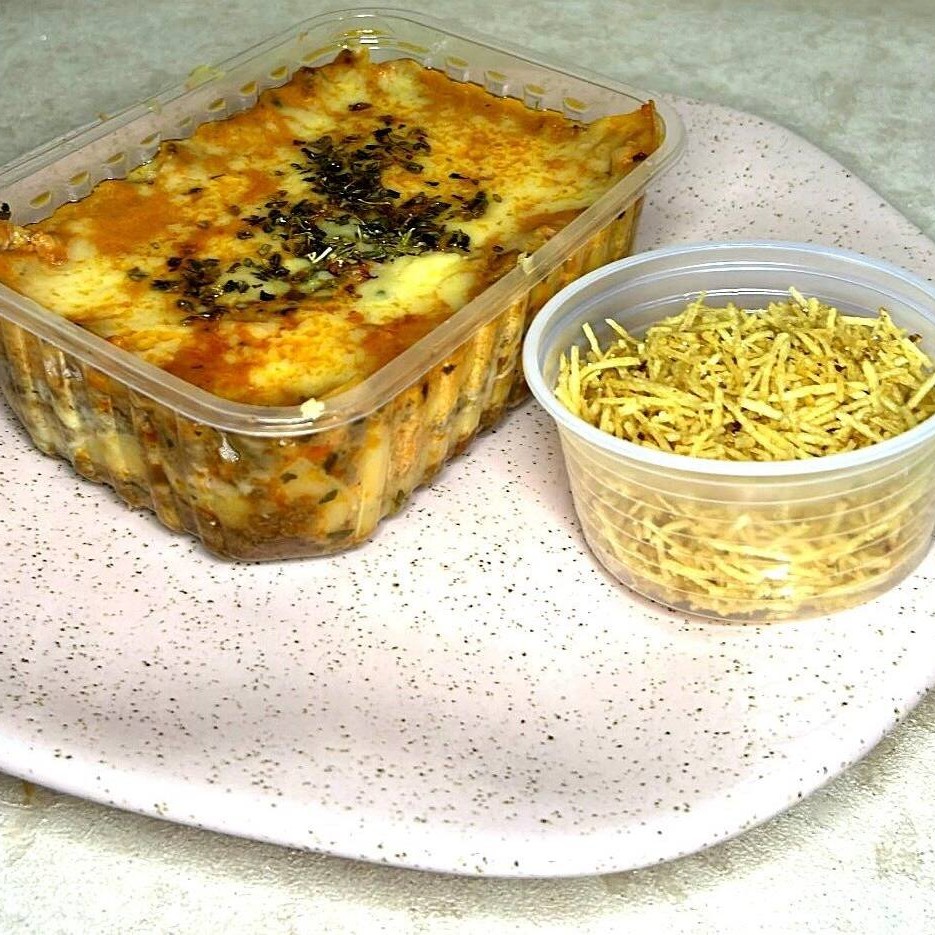 Combo Lasanha 500g + 1 Porção De Arroz + Batata Palha