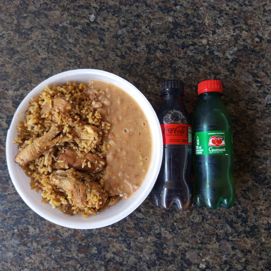 Arroz com frango e feijão carioca + refrigerante