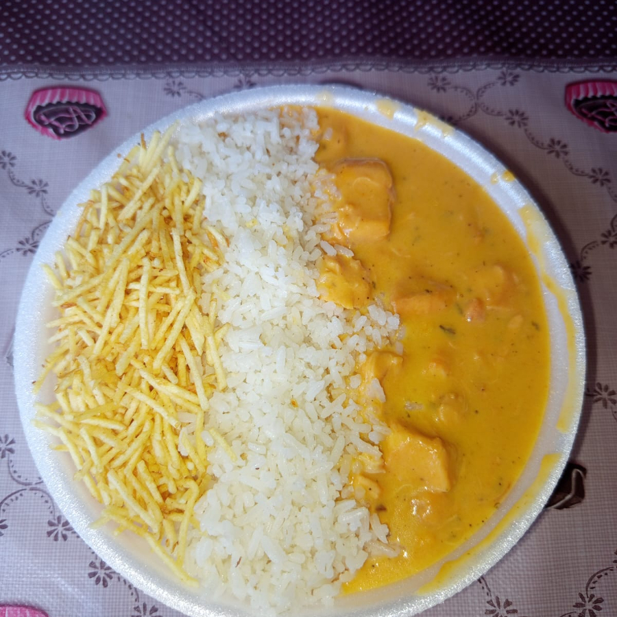 strogonoff de frango com Arroz branco e Batata Palha