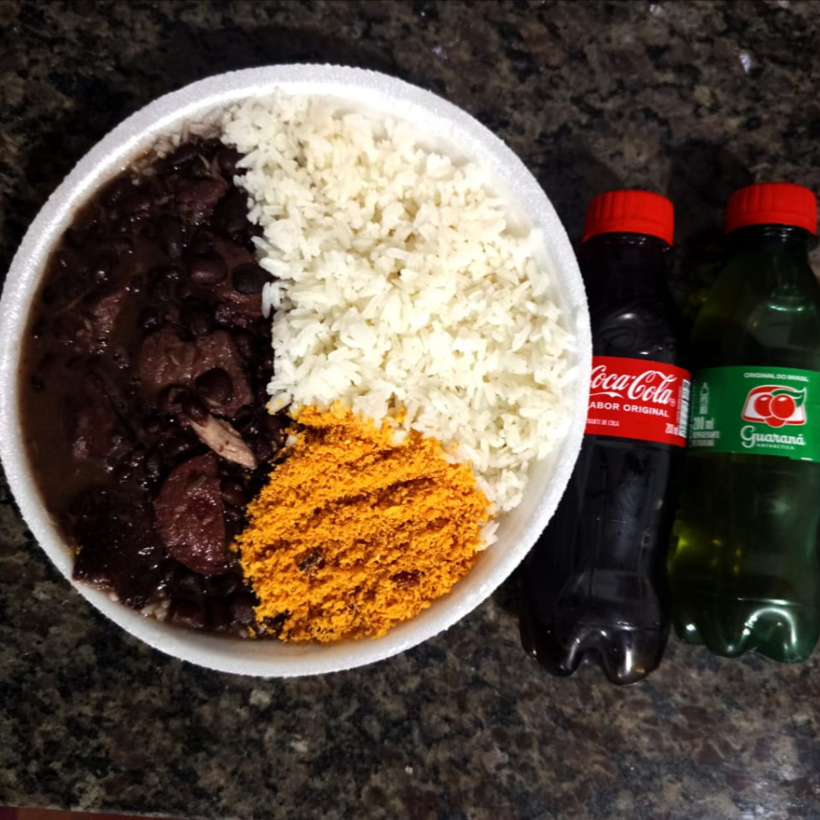 Feijoada com arroz branco e farofa + refrigerante