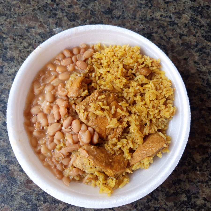 Arroz com frango e feijão carioca