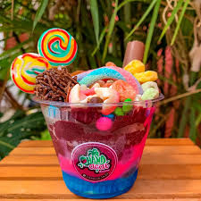 Açaí Batido com Leite condensado , Leite em pó e Paçoca.