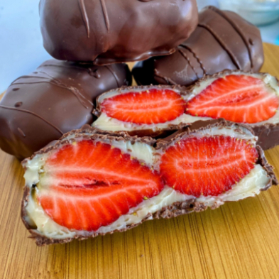 Aaa esse bombom é irresistível! Feito com um delicioso brigadeiro de ninho e recheio de morangos bem fresco e pra finalizar aquela casquinha crocante 😋