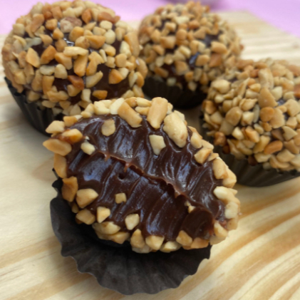 Combinação perfeita do super cremoso brigadeiro de chocolate 50% com a crocancia do amendoim torrado e triturado... Irresistível!!!