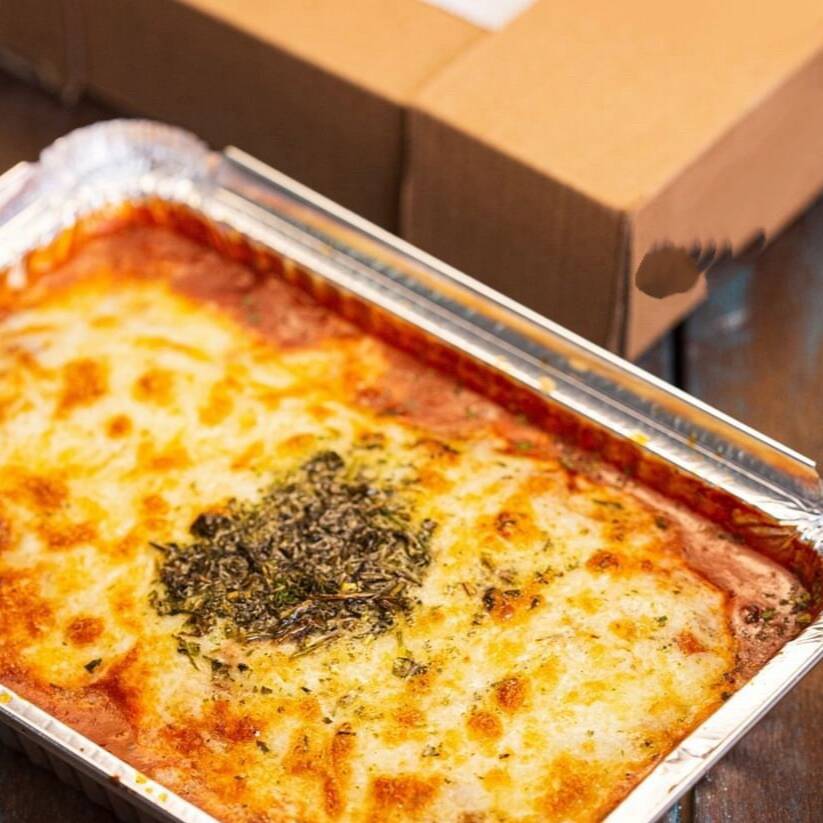 Delicie-se com a nossa 'Parmegiana de Filé de frango suculento, filé de frango(400gr) é cuidadosamente empanado, coberto com um autêntico molho de tomate e gratinado com queijo derretido ao ponto certo