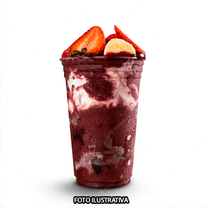Açaí Tradicional acompanhado de Leite condensado , Morango , Gotas de chocolate e Leite Ninho . ( Em cada Copo)