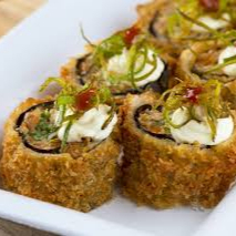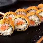 RECHEIO DE ARROZ, PATÊ DE SALMÃO CREAM CHEESE E CEBOLINHA , EMPANADO E FRITO.