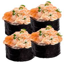 4 UND - BOLINHO DE ARROZ COBERTO COM FATIA DE SALMÃO .