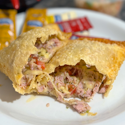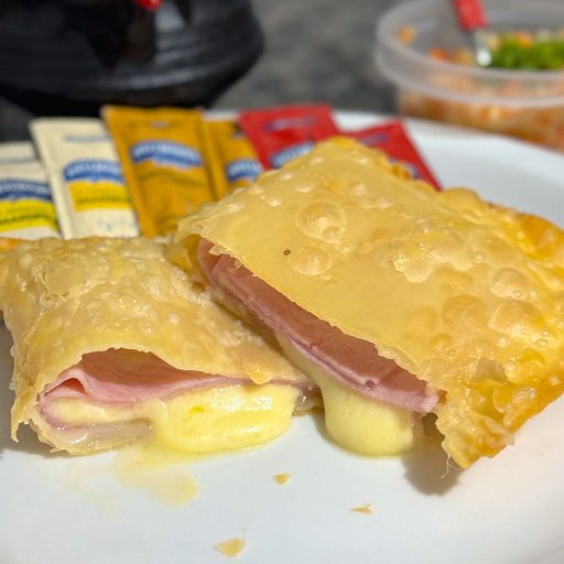 Nosso Pastel Tamanho Tradicional de Presunto e Queijo é recheado generosamente com presunto selecionado e muçarela que derrete na boca. Massa artesanal crocante e sequinha, frita na hora para garantir o melhor sabor.
