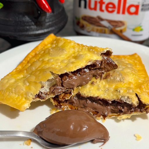 Pastel Tamanho Tradicional recheado com a verdadeira Nutella original, cremosa e irresistível. Uma massa dourada, crocante por fora e macia por dentro.