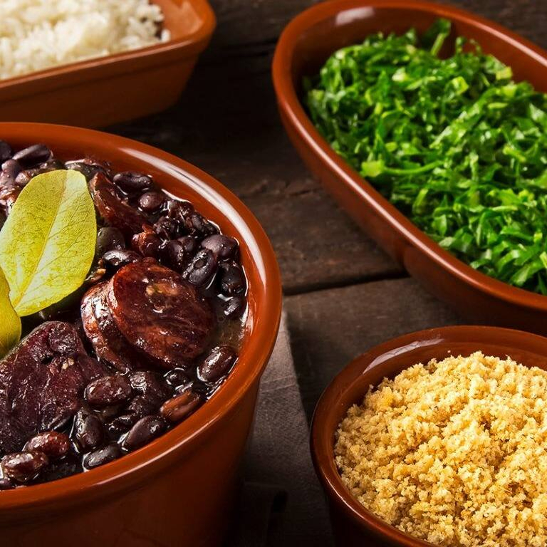 Arroz branco cremoso, Feijoada de porco completa ,Frango grelhado na medida certa, suculento e saboroso , farofa crocante para dar aquele toque especial, couve fresca e laranja fresca servida separada !