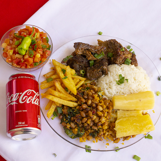 Acompanha Arroz a sua Escolha, Feijão a sua escolha, Batata Frita , Mandioca e Salada Separada