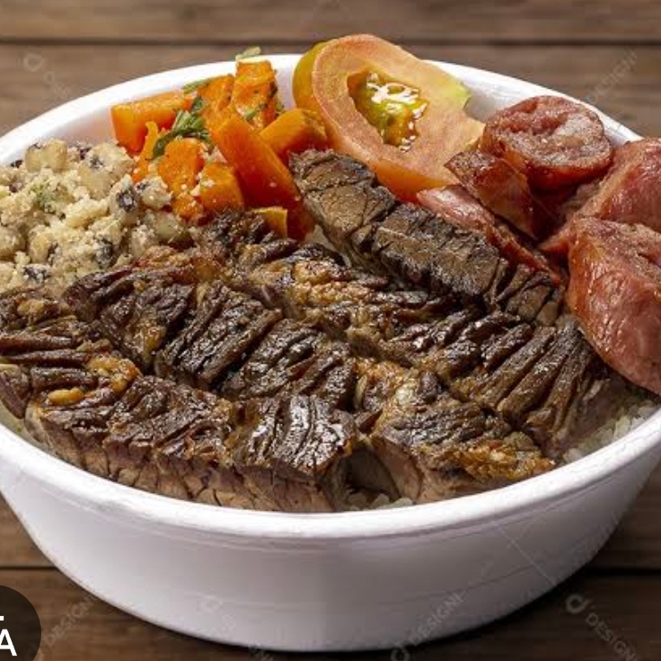 Acompanha: Arroz branco, Feijão de caldo ou tropeiro, Macarrão e um mix de Saladas separada.