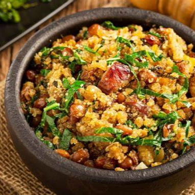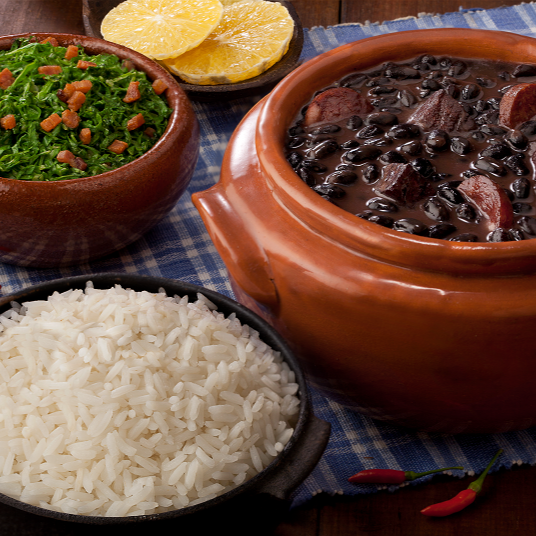 Arroz Branco, Feijoada, Farofa, Couve e Salada