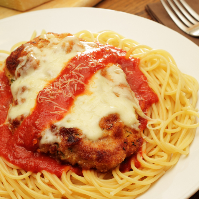 Arroz Branco, feijão de caldo, File de Frango, macarrão, verduras e salada.