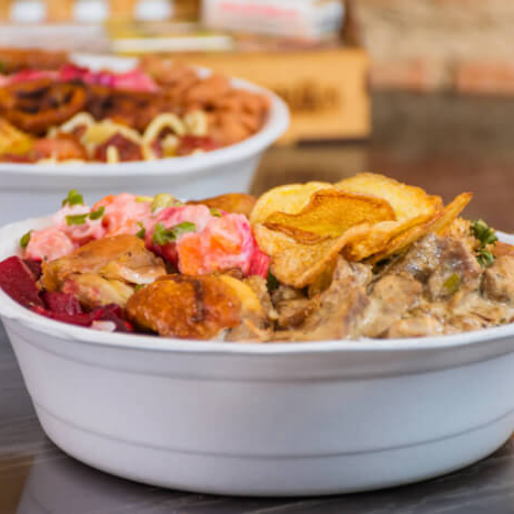 Escolha Sua Carne Servida com Arroz Soltinho, Feijão de Caldo ou Tropeiro, e Salada Separada. Marmitex Recheada Pra Quem Gosta de Comer Bem e com Fartura.