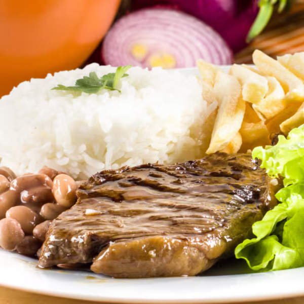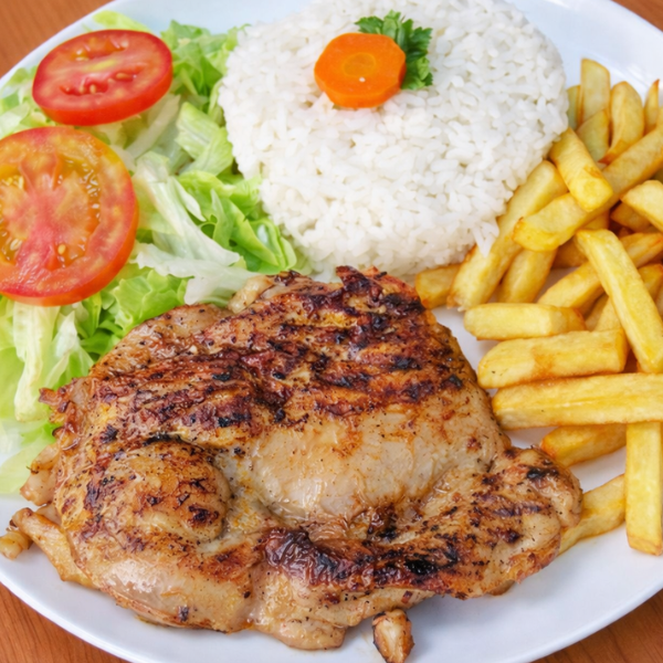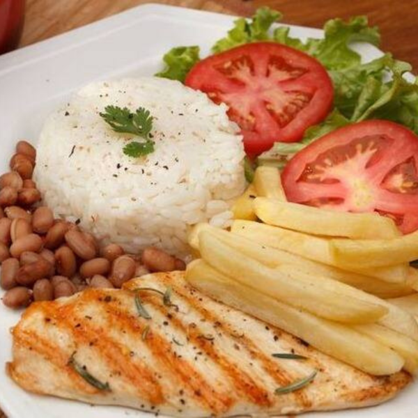 Filé de Frango Grelhado, Arroz Soltinho, Feijão de Caldo ou Tropeiro, Fritas Crocantes e Salada Fresca. Leve, Completo e Saboroso.
