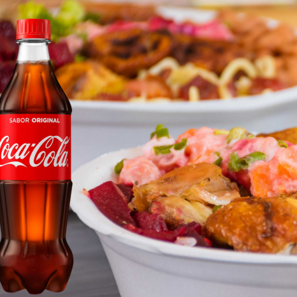 2 Pratos do Dia Caprichados Com Arroz Soltinho, Feijão de Caldo ou Tropeiro, Macarrão, Legumes e Salada, Acompanhados de Uma Coca-Cola 600ml Para Compartilhar!
