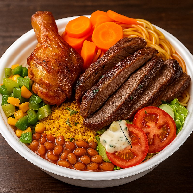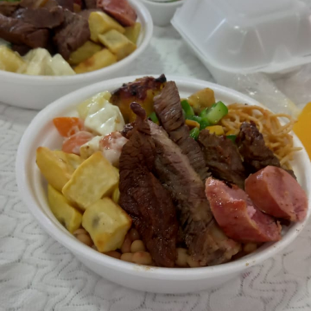Marmita Padrão (com Carne Assada Na Chapa) E Suco Gratis