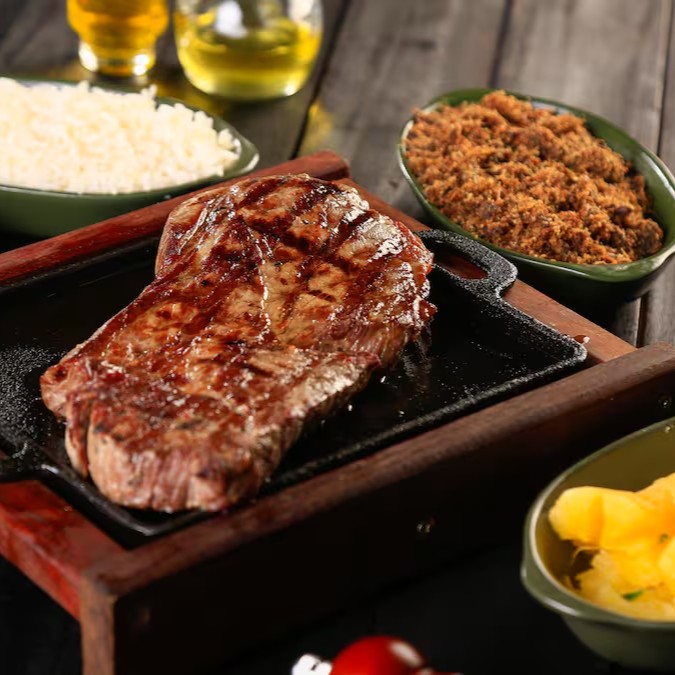 Carne de Sol Grelhada, Arroz Branco, Feijão Tropeiro ou Verde, Paçoca, Vinagrete e Mandioca Macia. Combinação Caseira Que Mata a Fome de Verdade!