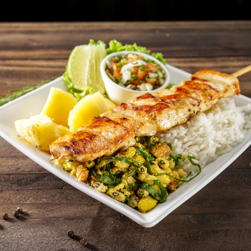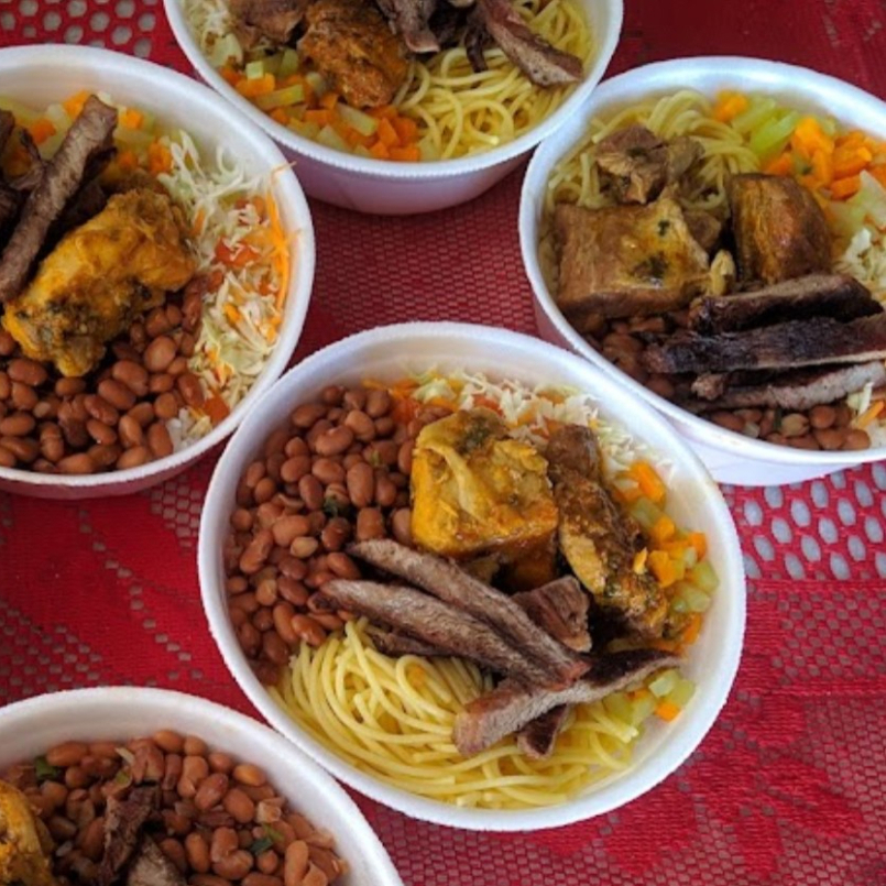 arros, feijão ,macarrão ,verduras, salada e churrasco