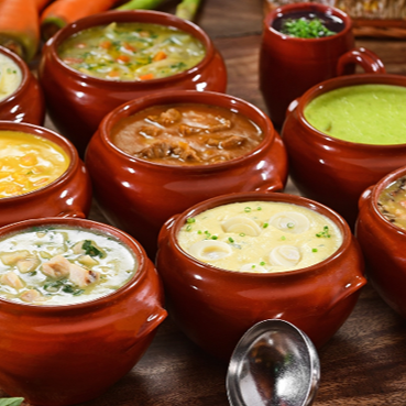Delicioso caldo de frango, acompanhado com torrada e cebolinha verde e torresmo