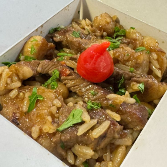 Carne de sol suculenta, puxada na manteiga do sertão, junto com um arroz ao dente. O combo perfeito pra quem gosta de comer bem e com sustança! Serve até 1 pessoa.