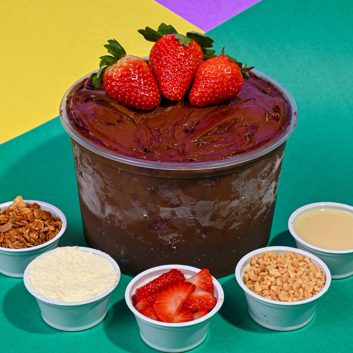 acompanha leite em po, granola, leite condesado e morango